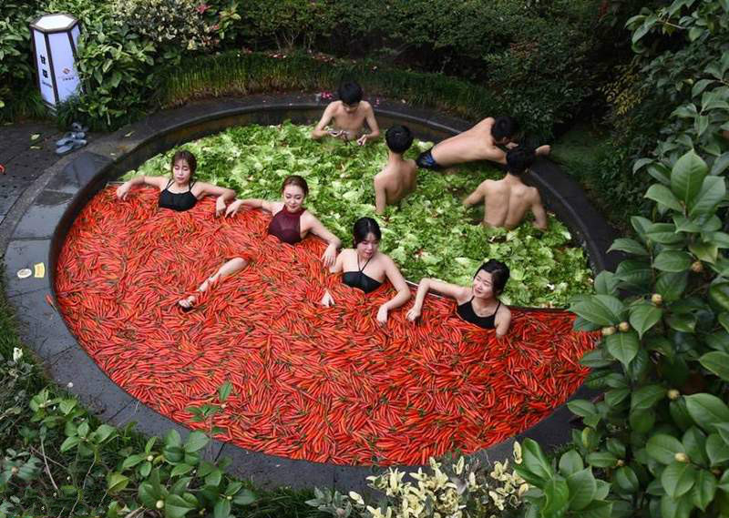 其实是中国杭州的一家温泉饭店所想出来的话题温泉啦!不过辣椒的那一边看起来怎么…觉得下面痛痛的啊…