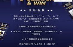 【EV扑克(www.evp68.com)报道】USOP岘港站即将到来,官方再次释出好消息!在3月19日至26日期间参与活动,集齐 “USOP” 字母即可获得价值 $1,235 美元的主赛事门票!