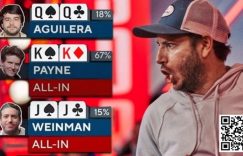 主赛事中的心碎下面这手牌改变了扑克历史的进程。大家都有一手好牌的多人全下并不多见,但这里却发生了。就在电视桌上的摄像机前,WSOP主赛事冠军Daniel Weinman面临着一个艰难的决定,这个决定将彻底改变他的人生。