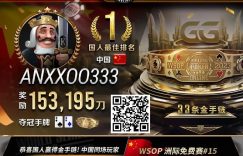 WSOP喜报国人第三条WSOP金手链入袋恭喜中国选手ANXXOO333勇夺#15超深筹赛冠军奖励153,195刀