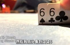 我们来浅看2手。这手牌的结果真是让人大跌眼镜。枪口+1位,HJ位和小盲位都跟注,Brad Owen在大盲位过牌,然后看牌是6♠6♣。